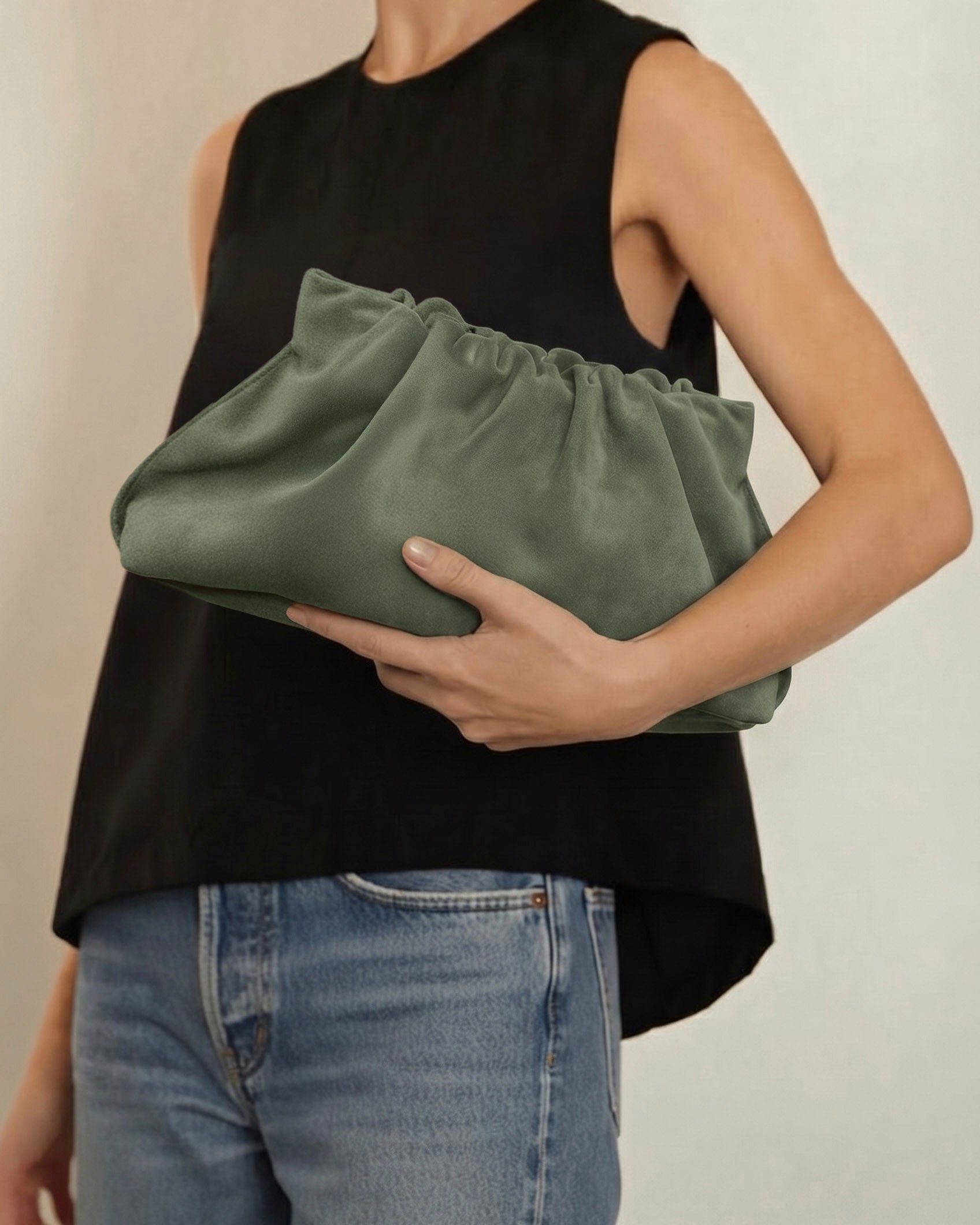 Suede Cloud Bag in Forest