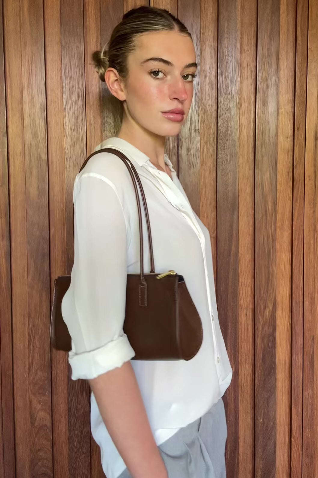 Designed to be worn effortlessly on the shoulder, this versatile bag transitions seamlessly from day to evening while offering generous space for your essentials in an elegant, minimalist silhouette.